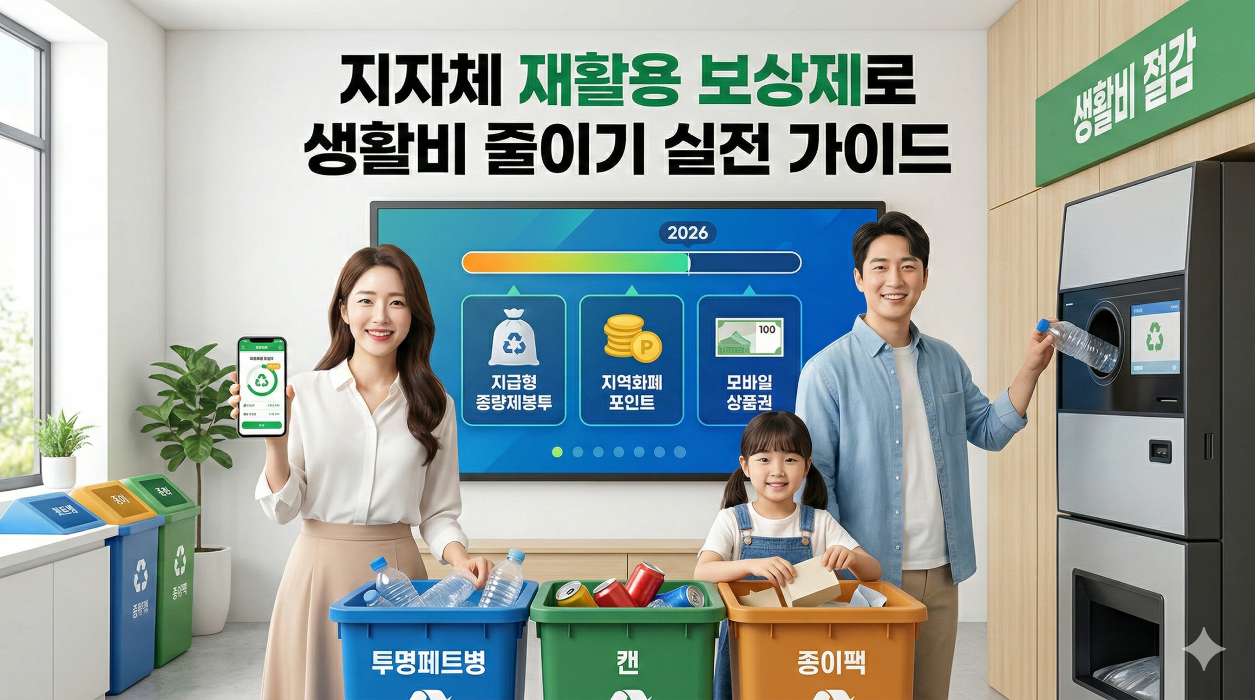 💡 핵심 포인트: 2026년에는 지역 단위 자원순환 정책이 더욱 촘촘해집니다. 환경부의 ‘탄소중립포인트(녹색생활 실천)’나 지자체별 무인회수기(수퍼빈 등) 앱을 적극 활용하면, 버려지던 쓰레기가 쏠쏠한 현금성 포인트로 돌아옵니다.