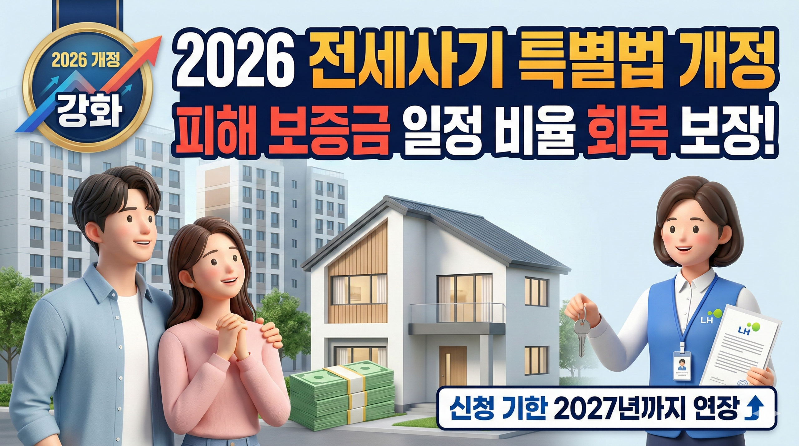 2026년 전세사기 피해지원 특별법은 기존의 한계를 보완하고, 더 많은 피해자들이 실질적인 도움을 받을 수 있도록 여러 부분이 개선되었습니다. 특히 보증금 회복 보장과 LH의 역할 확대가 주목할 만한 변화입니다.